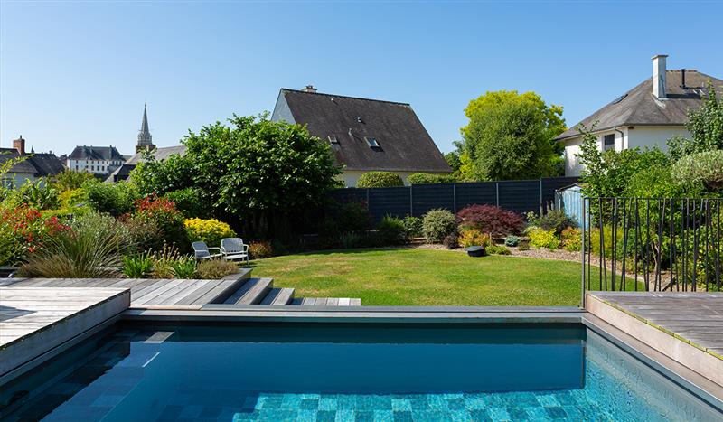 Vérifiez aussi l’état du mobilier de jardin, du pool house et de l’éclairage. Remplacez les éléments abîmés car un espace extérieur bien entretenu favorise la détente et assure un environnement agréable et sécurisé autour du bassin.