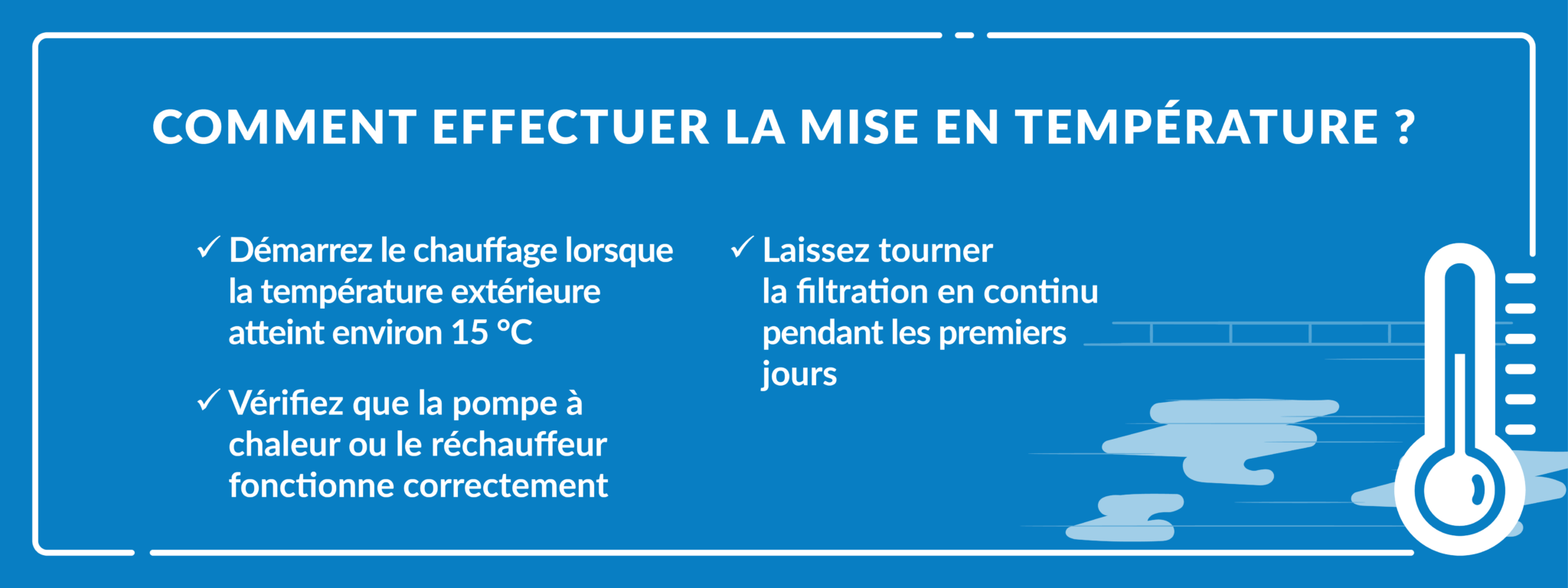 Mise en température et première mise en route de la piscine